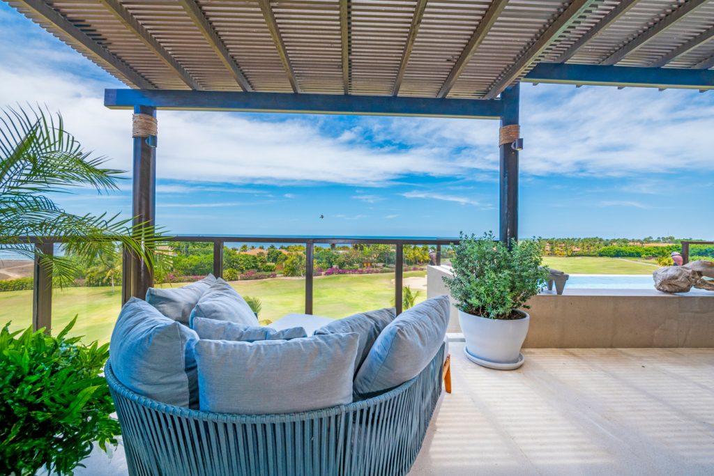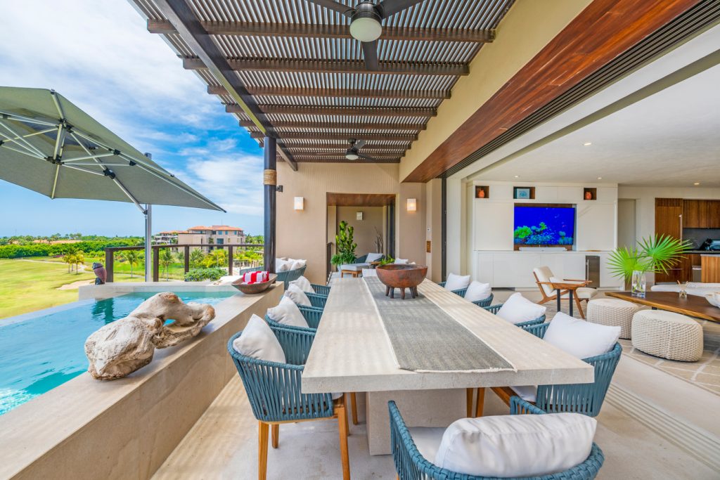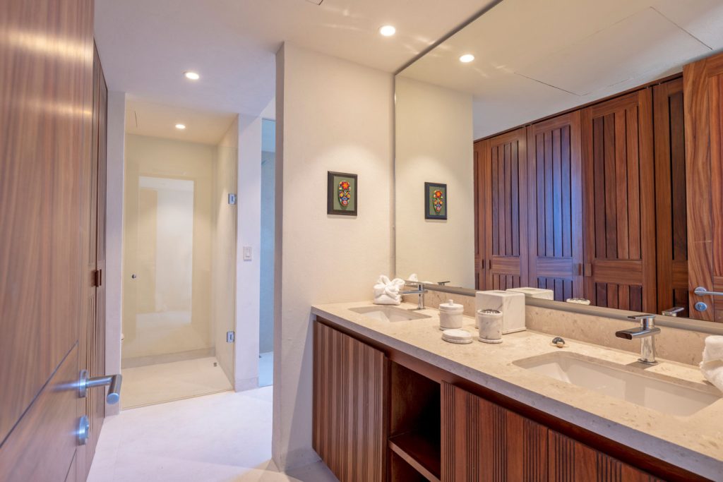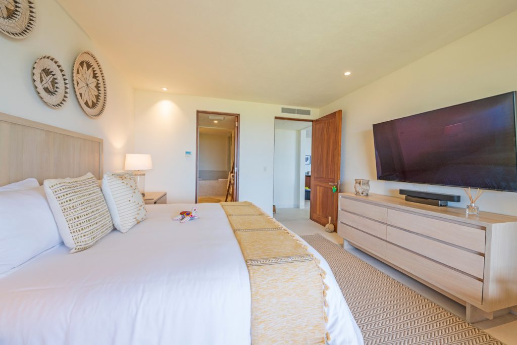 Condo Carey is ideally situated alongside the 18th hole of the Jack Nicklaus Signature Bahía Golf Course, within the prestigious gates of Punta Mita, home to the world-renowned Four Seasons resort and a collection of exceptional dining options. This elegant residence offers a unique blend of contemporary sophistication with stunning ocean views from its two master bedrooms, each featuring an en-suite bathroom and a luxurious outdoor shower. The expansive private terrace, complete with a plunge pool, seamlessly connects the separate living and dining areas, providing an ideal setting for relaxation and entertainment.