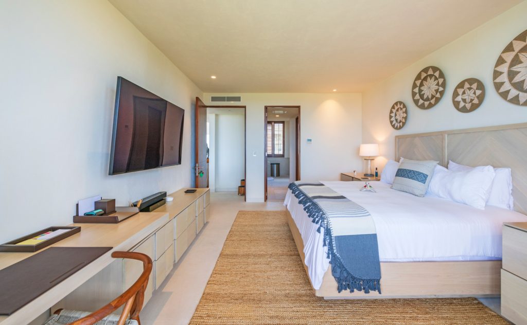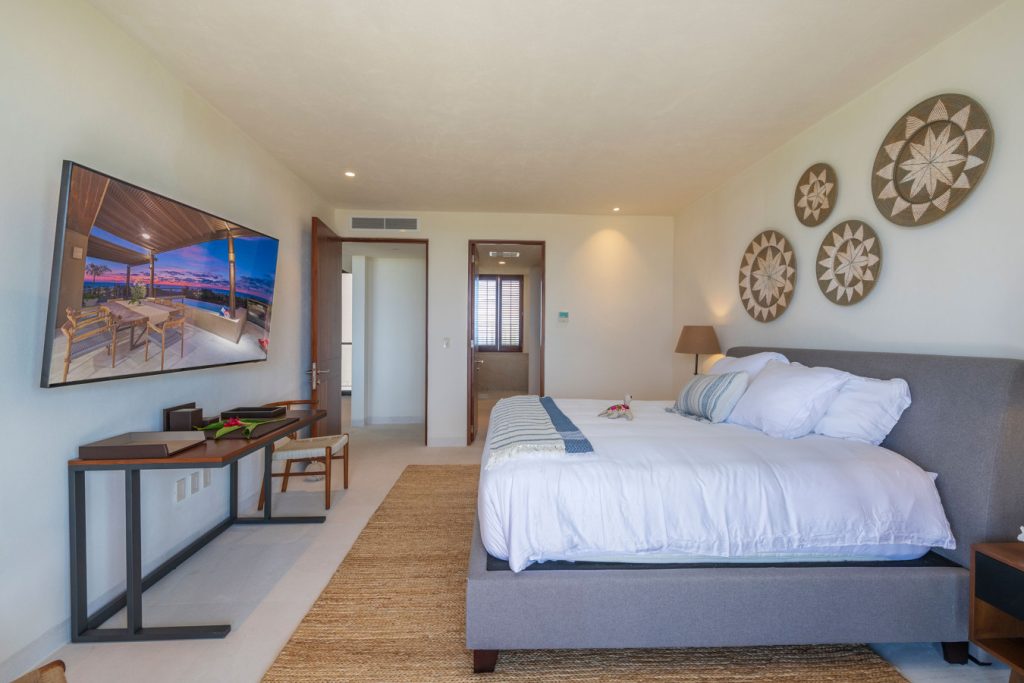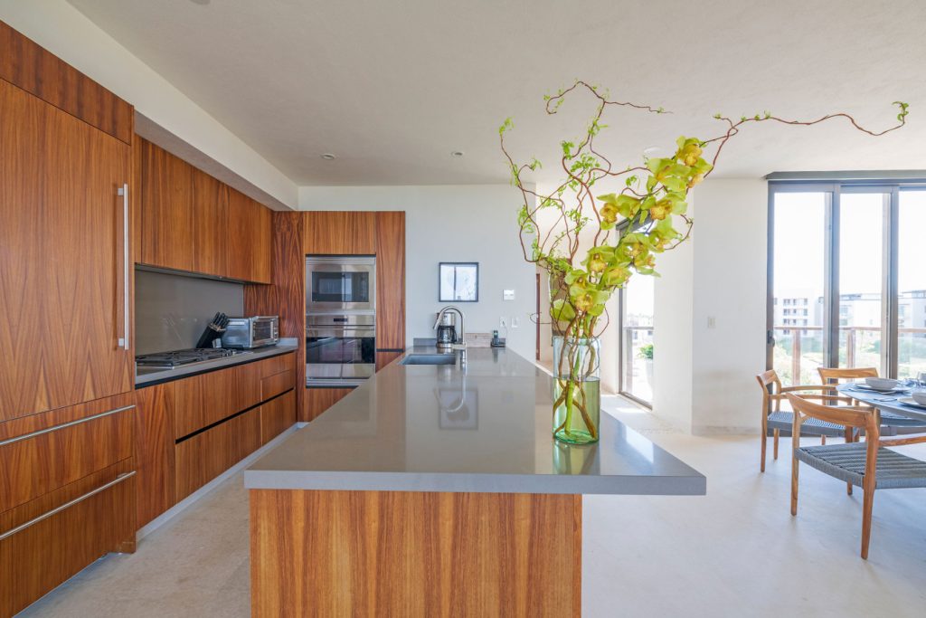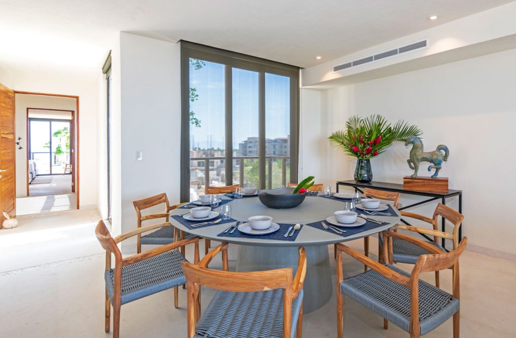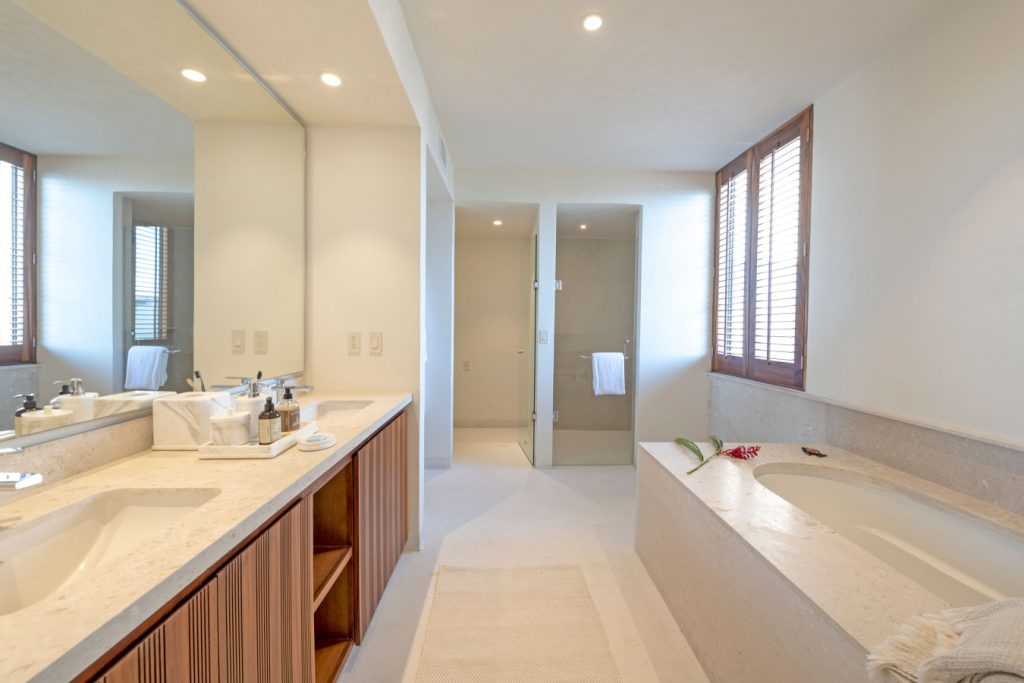 Condo Carey is ideally situated alongside the 18th hole of the Jack Nicklaus Signature Bahía Golf Course, within the prestigious gates of Punta Mita, home to the world-renowned Four Seasons resort and a collection of exceptional dining options. This elegant residence offers a unique blend of contemporary sophistication with stunning ocean views from its two master bedrooms, each featuring an en-suite bathroom and a luxurious outdoor shower. The expansive private terrace, complete with a plunge pool, seamlessly connects the separate living and dining areas, providing an ideal setting for relaxation and entertainment.